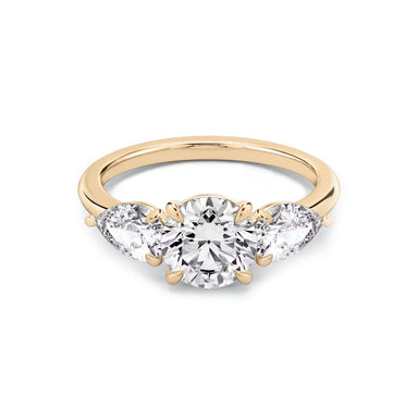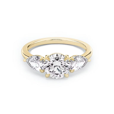 Ring Description The Luna features lab grown diamonds, 1 round diamond in the centre and 2 pear shape diamonds on the sides. Handcrafted on a class...