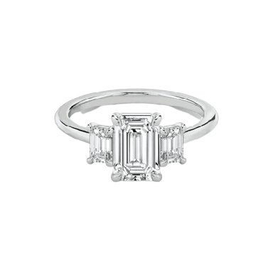 Ring Description The Josie features lab grown diamonds, 1 Emerald cut diamond in the centre and 2 smaller Emerald cut diamonds on the sides. Handcr...