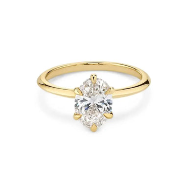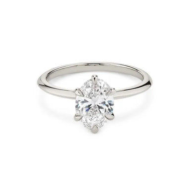 Ring Description The Jayda features an Oval cut lab grown diamond in a 6 claw setting. Handcrafted on a classic half round band, approx. 2.5mm widt...