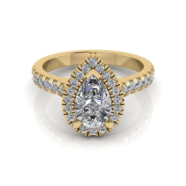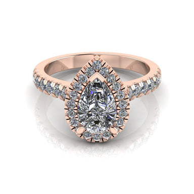 Ring Description The Lana features a lab grown Pear cut diamond in a halo design. Metal - 18ct Rose Gold, White Gold and Yellow Gold. Diamond Siz...