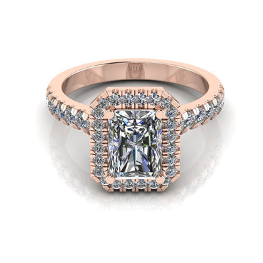 Ring Description The Rhonda features a lab grown radiant cut diamond in a halo design. Metal - 18ct Rose Gold, White Gold and Yellow Gold. Diamond...