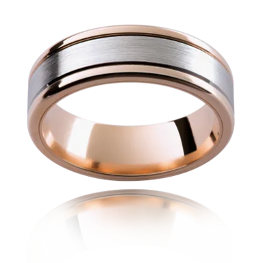 ENQUIRE NOWRing Description The Mark features a 7mm wide band, with rose gold on the outside edges and white gold in a matt finish through the centre. Avail...
