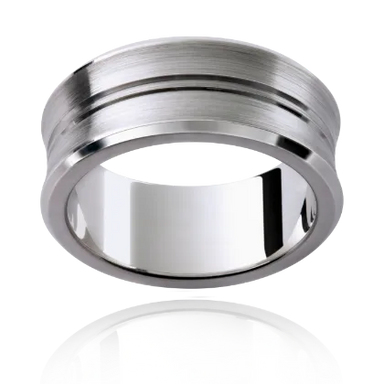 ENQUIRE NOWRing Description The Xander features a 7mm wide band, in a concave shape with two lines in the centre and polished beveled edges. Available in Pl...