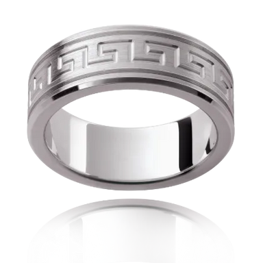 ENQUIRE NOWRing Description The Andrew features a 7mm wide band, with matt finish in the centre with a lined pattern and and polished outside beveled edge...