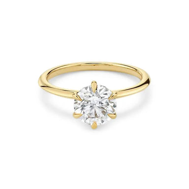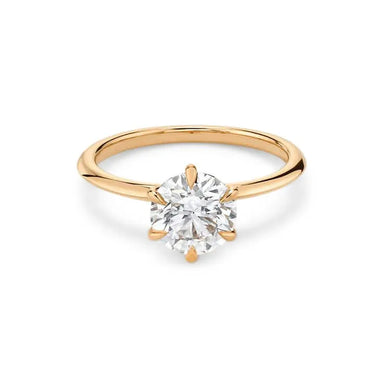 Ring Description The Priya features a round cut lab grown diamond in a 6 claw setting. Handcrafted on a classic half round band, approx. 2.5mm widt...